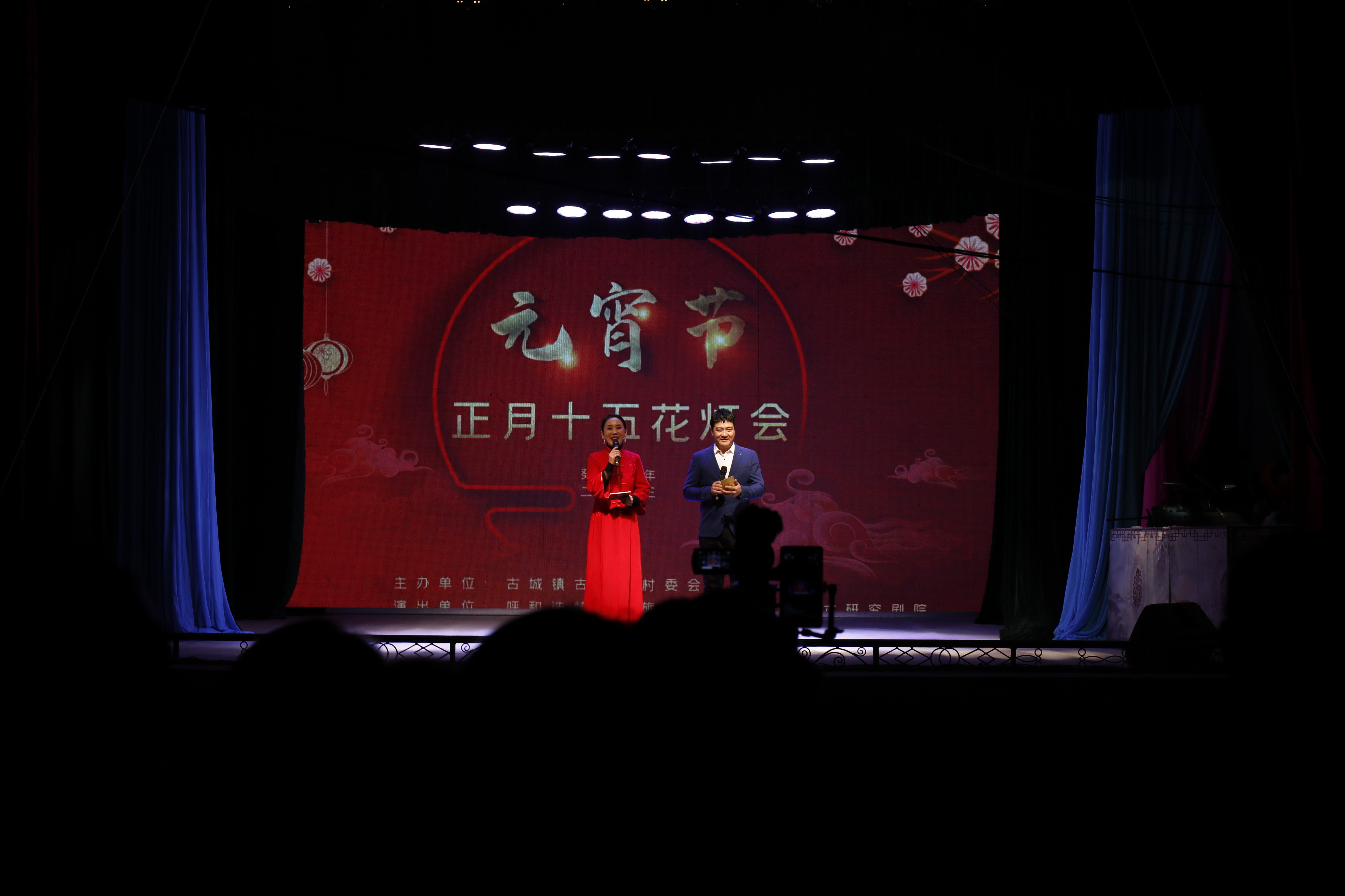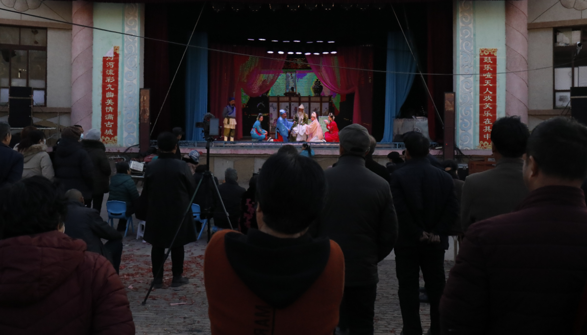 ? 正月十四晚,華燈初上的古城村,燈火璀璨,流光溢彩,首場演出,戲臺前圍滿了聽戲觀眾,二人臺傳統(tǒng)小戲《鬧元宵》作為開場節(jié)目,贏得了觀眾的陣陣叫好聲。