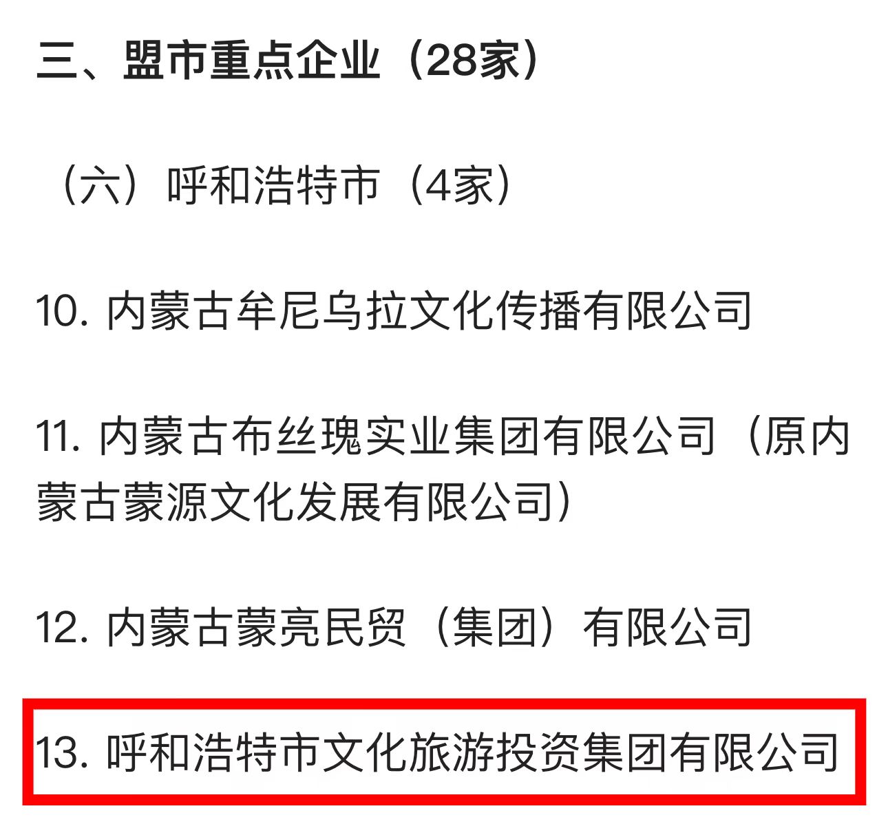呼和浩特市文化旅游投資集團(tuán)有限公司入選